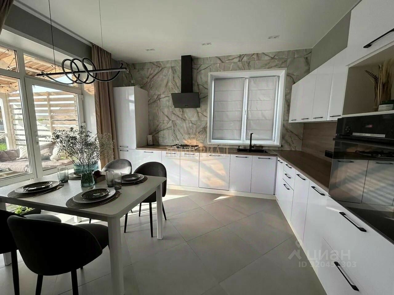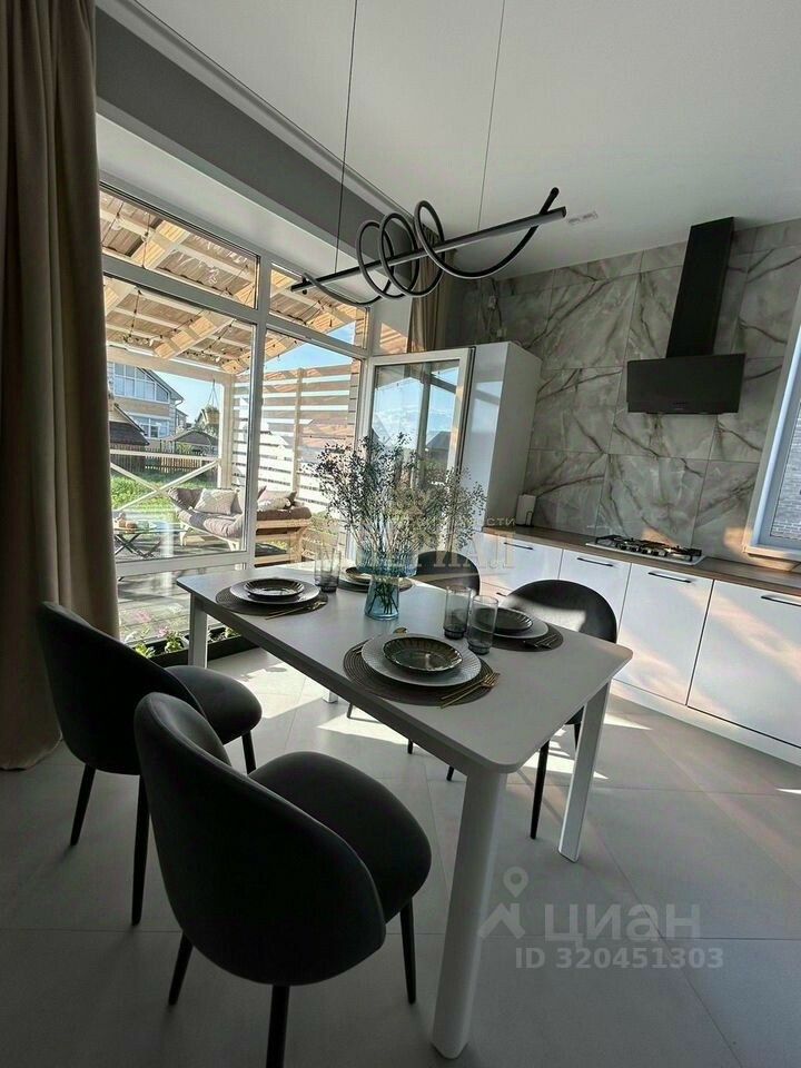 Дoм c дизaйнерским ремонтом, с мебелью и оборудованием. Всё входит в указанную стоимость. С кухни выход на террасу с живописным вечерним видом на закат. Из оборудования: автоматические гаражные ворота Dооrhаn (открытие/закрытие с пульта), новая бытовая кухонная техника (духовой шкаф, двухконтурный итальянский газовый котел, широкая посудомоечная машина на 60см, газовая варочная поверхность, кухонная вытяжка, дополнительные вытяжки в двух санузлах, теплые полы на первом этаже по всей площади и в ванной второго этажа).