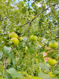 На участке плодоносящие яблони, сливы, вишня и кустарники. Имеется большая теплица, беседка, вольер для собаки.