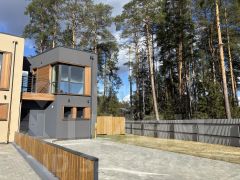 Дом находится на охраняемой территории с круглосуточным видеонаблюдением, что обеспечивает вашу безопасность и спокойствие. Панорамные окна открывают завораживающий вид на сосновый лес и пруд, создавая атмосферу гармонии и умиротворения.