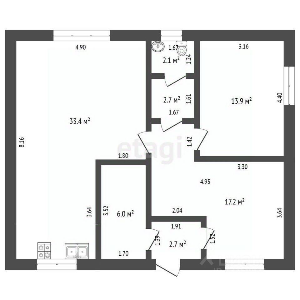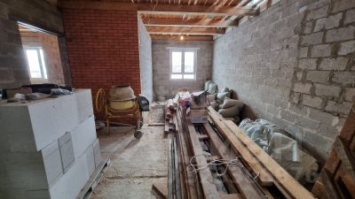 Дом площадью 90,3 кв.м. построен в два этажа и предлагает все необходимые удобства для комфортной жизни. На первом этаже вас ждёт просторная кухня-гостиная, где можно собираться с семьёй и друзьями, отдельная комната, санузел и котельная. Второй этаж порадует большой комнатой с панорамным остеклением, откуда открывается потрясающий вид на окружающие пейзажи.