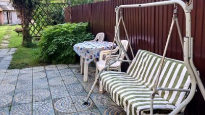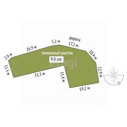 Участок площадью 9 соток полностью благоустроен: огорожен забором из профлиста, предусмотрено место для парковки двух автомобилей.