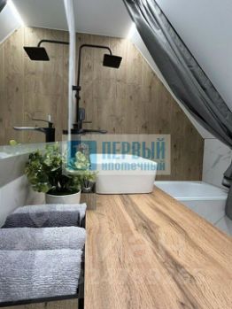 Из оборудования: автоматические гаражные ворота Dооrhаn (открытие/закрытие с пульта), новая бытовая кухонная техника (духовой шкаф, двухконтурный итальянский газовый котел, широкая посудомоечная машина на 60см, газовая варочная поверхность, кухонная вытяжка, дополнительные вытяжки в двух санузлах, теплые полы на первом этаже по всей площади и в ванной второго этажа).