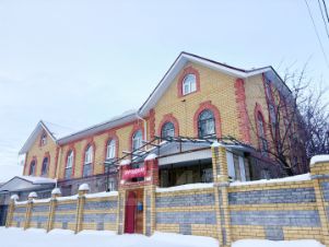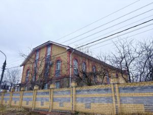 Здание построено из качественного красного и белого кирпича, имеет наружную отделку из силикатного, железобетонные перекрытия и толстые несущие стены толщиной 75 см., по периметру дом огорожен высоким кирпичным забором.