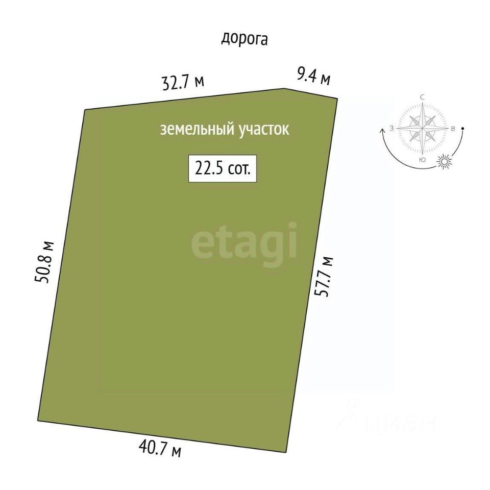 Федеральная компания Этажи предлагает к покупке участок площадью 22,5 сотки для индивидуального жилищного строительства .