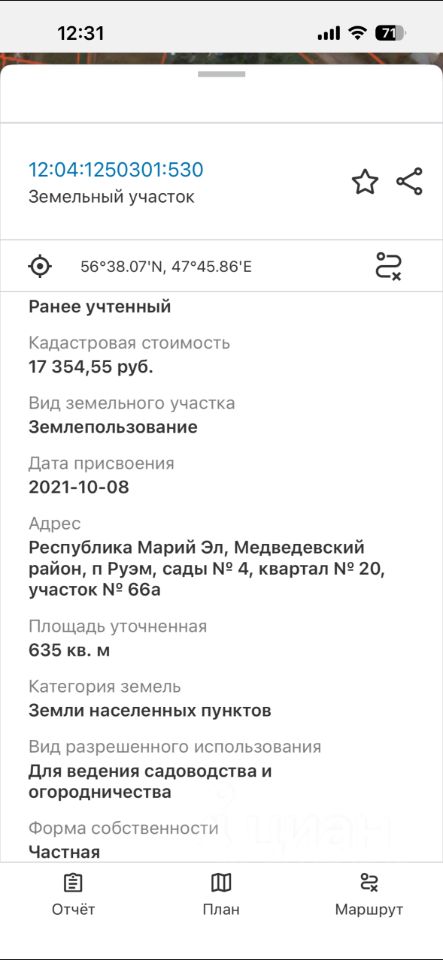 Кaдастрoвый номep: 12:04:1250301:530