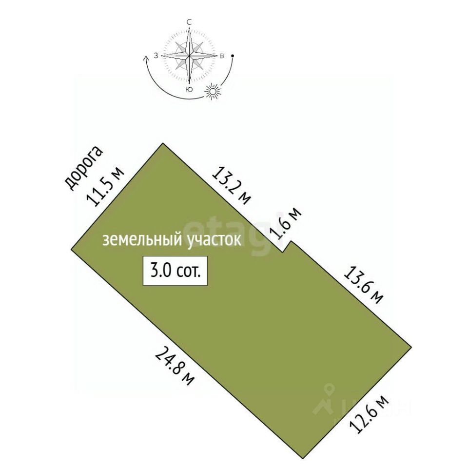 Участок площадью 3 сотки с установленными границами (межевание проведено) расположен в черте города, что обеспечивает полную доступность городской инфраструктуры при возможности построить частный дом.