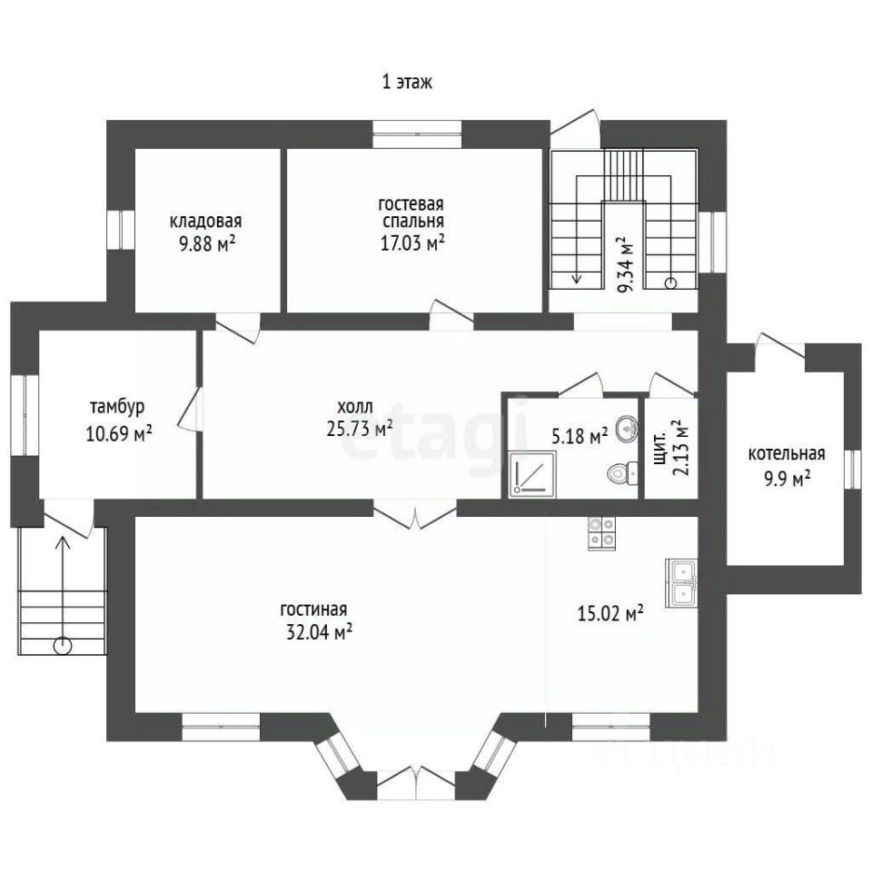 Планировка продумана для комфортной жизни семьи: на первом этаже находятся просторная гостиная, объединенная с кухней-столовой 45 кв.м, кабинет, санузел с душевой кабиной и кладовая. Второй этаж отведен под приватную зону с тремя изолированными спальнями, кабинетом, гардеробной и отдельным санузлом с ванной, рядом с которым оборудована удобная прачечная. Ремонт выполнен экологичными материалами.