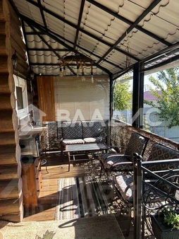 Все три уровня соединяет лестница на каркасе с коваными элементами, вторым светом, панорамными окнами, прямыми маршами, удобными ступенями и поворотными площадками. На веранде обустроена зона для отдыха.