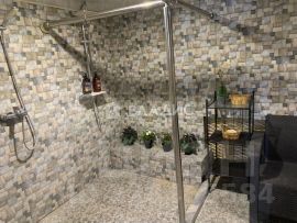 Первый этаж площадью 84 кв. м включает: котельную с разведённой системой отопления на 4 контура (непосредственно отопление, тёплые полы, нагрев воды в бассейне); газовый котёл Vaillant на 36, бойлер косвенного нагрева Royal Thermo на 200, электрощитовую на 380 В; прихожую, проходную комнату, просторную гостиную, кухню (дорогой гарнитур со столешницей из камня и встроенной мойкой), санузел и коридор.