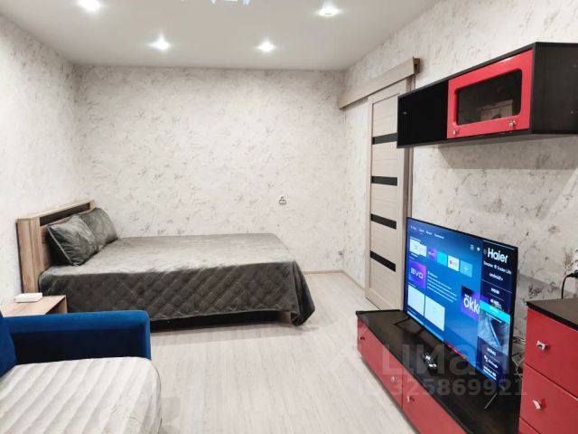 • Кухня-гостиная с двуспальным диваном, кухонным гарнитуром, шкафом.